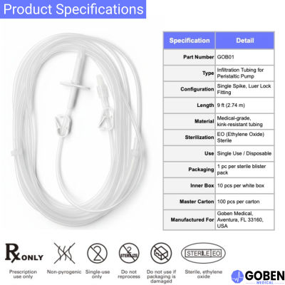 Goben Medical’s Infiltration Tubing (GOB01) is precision-engineered for consistent, controlled infiltration during liposuction and tumescent procedures. The tubing integrates seamlessly with peristaltic infusion pumps, ensuring stable flow rates and sterile operation.